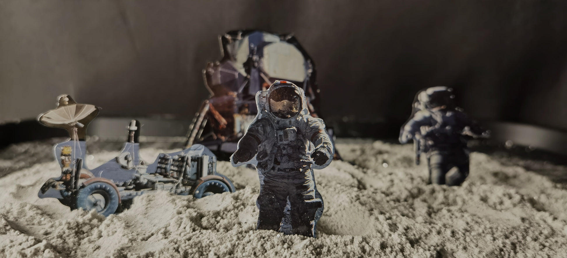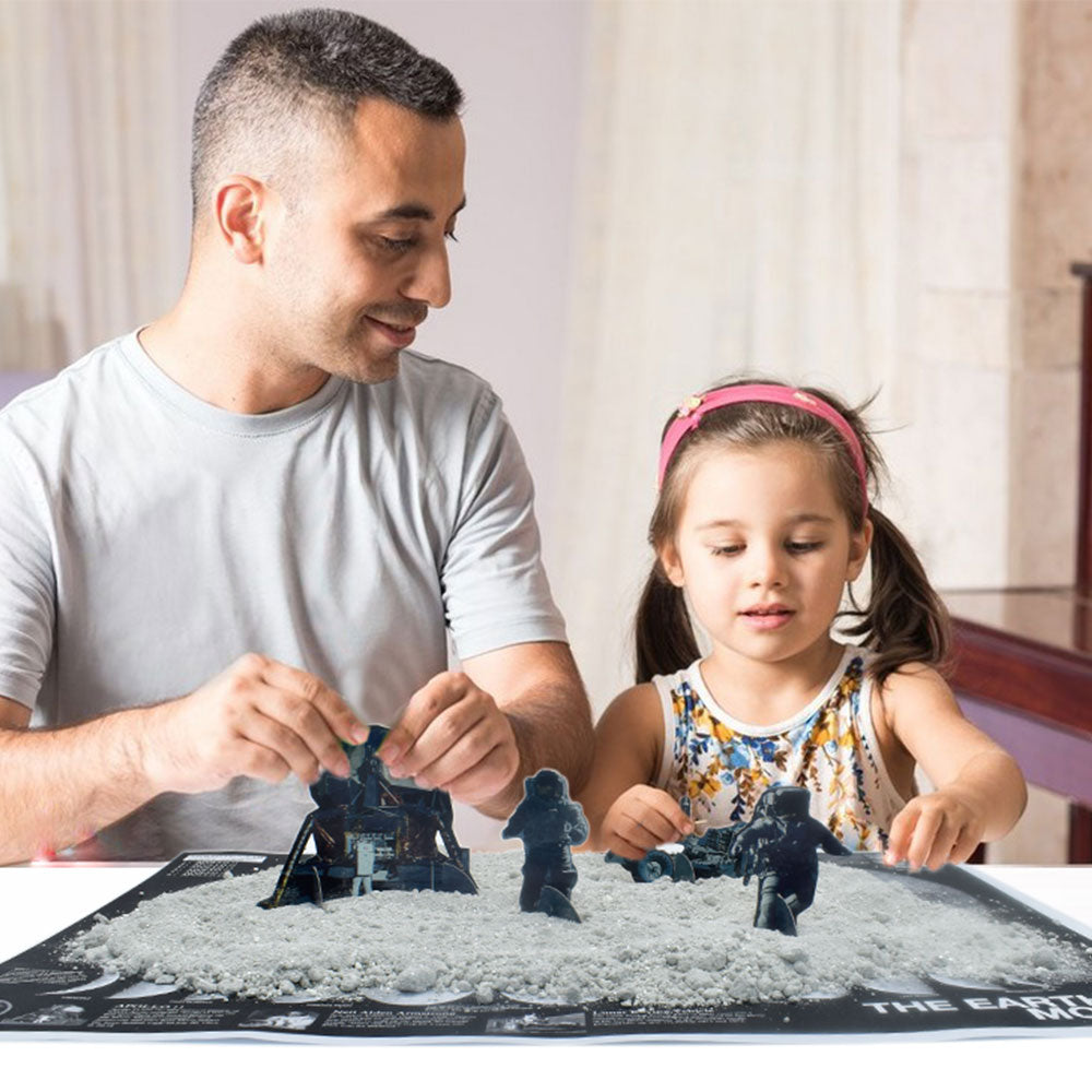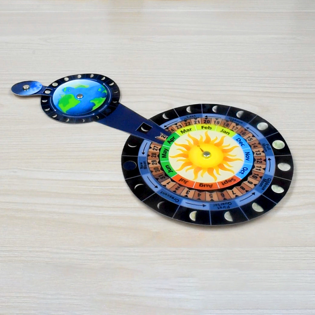 العلبة تتكون من تعليم الطفل عن رحلة الذهاب الى القمر والنزول والرجوع الى الأرض وعن النظام الشمسي