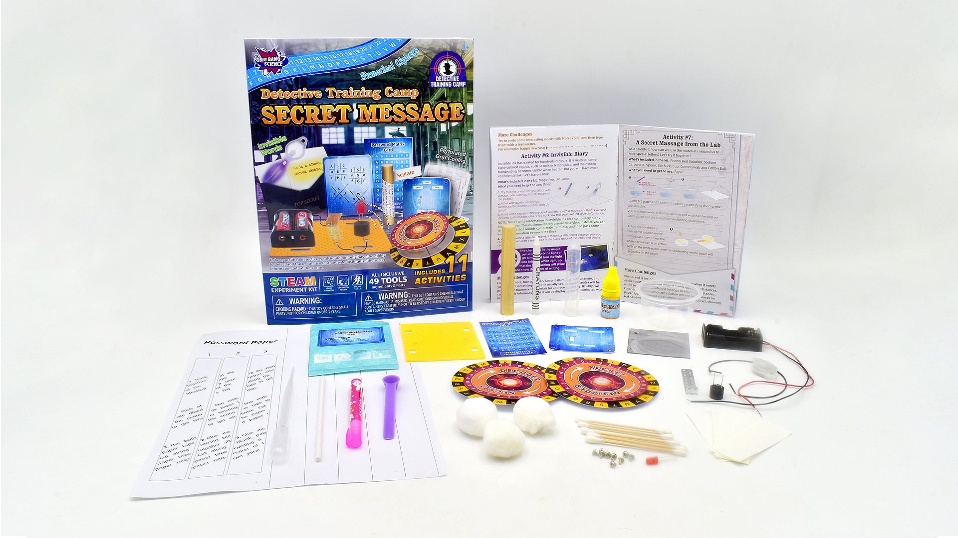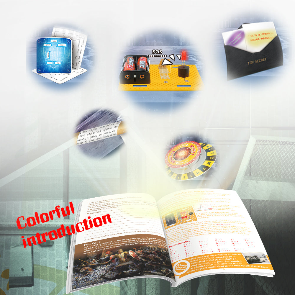 العلبة تتكون من تجارب تعليمية للطفل لتشفير الرسائل وفك تشفير الرسائل ب 11 طريقة